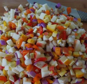 - Comincia con il preparare le verdure sul tagliere per farle a cubetti di circa 1 cm