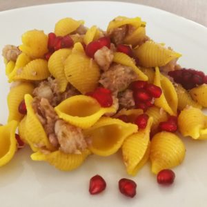 Aggiungete al composto i chicchi di melograno, privati accuratamente della parte bianca (è amara) e fate soffriggere ancora per qualche minuto.