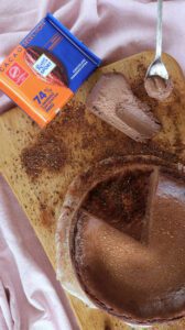 L'impasto dovrà avere un aspetto liscio e vellutato senza nessuna presenza di bollicine o grumi. Al contrario della versione originale sembrerà piu' denso ricorderà molto l'aspetto di una mousse liquida. A questo punto potete versare il vostro composto nella teglia.