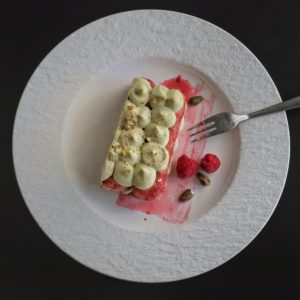 Grazie alla straordinaria compattezza della crema di Skyr al Pistacchio potrete realizzare il vostro tiramisù anche su un piatto piano da portata, magari rettangolare, senza avere necessità della classica pirofila 😉.