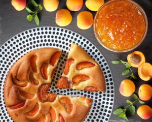 Ora non vi resta che ricopre benetutta la farcia di marmellata con l’impasto e livellare con attenzione. Adagiate sopra le albicocche creando il disegno che più vi piace e mettete nuovamente in forno.